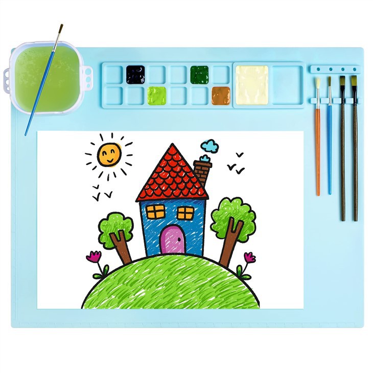 3. Tikar seni silikon yang dikemas kini ini mempunyai dua dulang cat bulat yang cukup besar untuk pengadunan yang berkesan, cawan pembersih berus yang boleh dilipat dan keupayaan untuk digunakan sebagai palet cat dan palet. Tikar pencipta silikon ini mempunyai sisik di kiri dan bawah yang lebih praktikal untuk penghasilan artistik anda.
